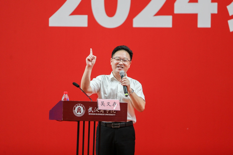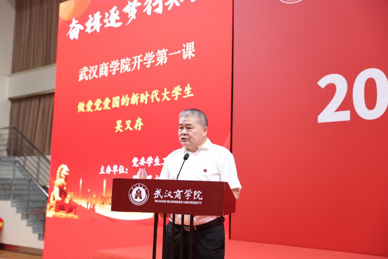 为贯彻落实习近平总书记关于“培养德智体美劳全面发展的社会主义建设者和接班人”指示精神,坚持用习近平新时代中国特色社会主义思想铸魂育人,将立德树人根本任务落到实处,9月4日,党委学生工作部和马克思主义学院在北区体育馆联合为2024级新生举办了“开学第一课”活动,全国模范教师、国家“万人计划”教学名师、湖北省特级教师、武汉市解放中学副校长吴又存老师,以“做爱党爱国的新时代大学生”为题应邀开讲。“开学第一课”活动由马克思主义学院郑柱泉主持。