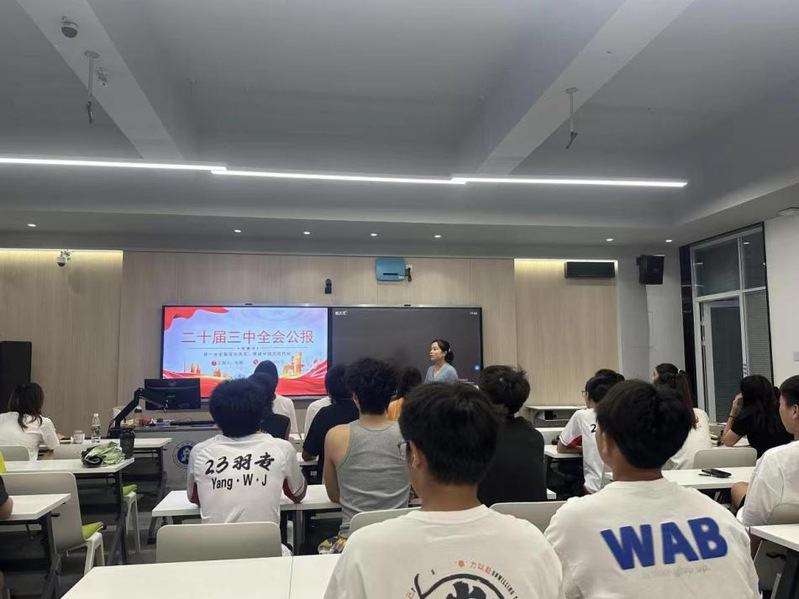 在信息学院特研会,蒋文汇老师强调,党的二十届三中全会是在以中国式现代化全面推进强国建设、民族复兴伟业的关键时期召开的一次十分重要的会议,全会通过的《中共中央关于进一步全面深化改革、推进中国式现代化的决定》,为新征程上的进一步全面深化改革指明了方向、提供了根本遵循。