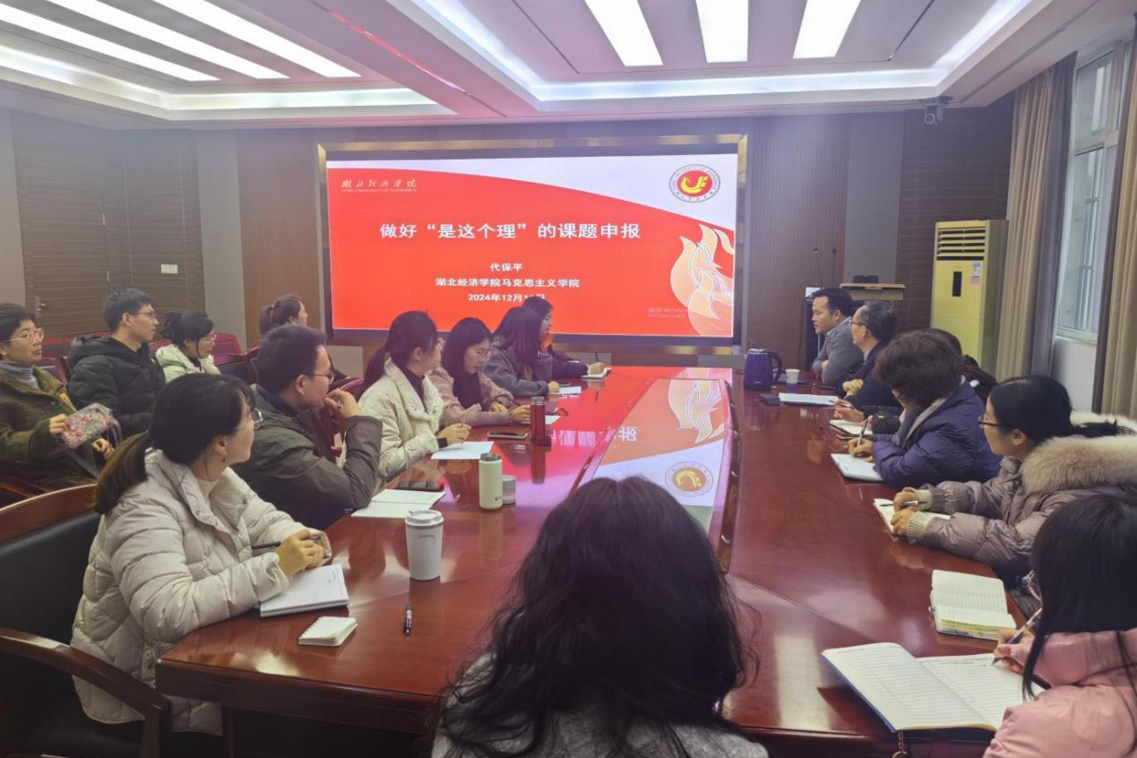12月10日,马克思主义学院在北二219会议室举办了省社科基金“是这个理”专项申报讲座。省社科基金专项“是这个理”评审专家代保平教授应邀参加,马克思主义学院副院长刘宗劲主持了本次活动,荆楚革命文化研究团队、预聘制博士以及相关教师参加了本次讲座。