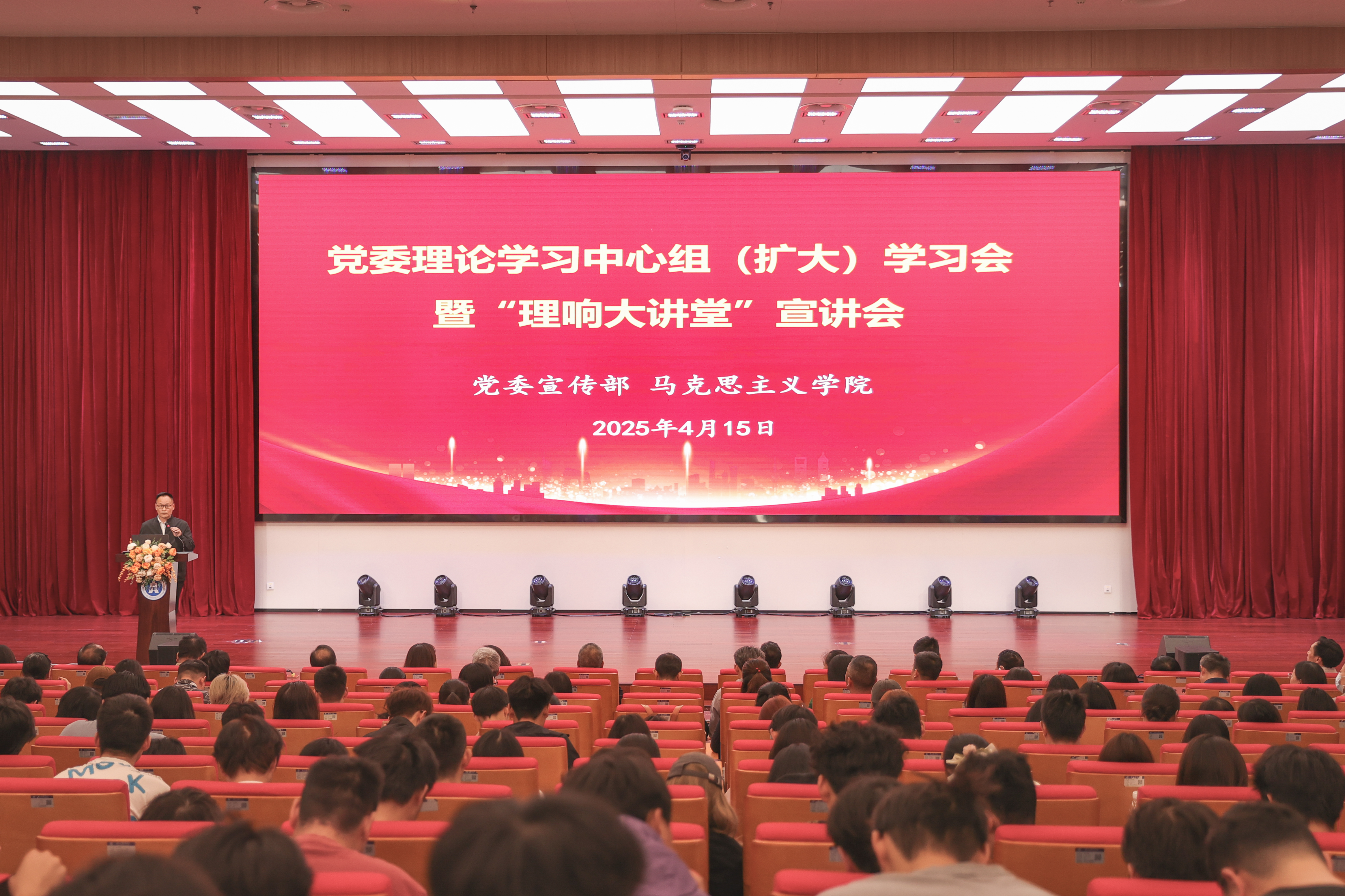 4月15日,在第十个全民国家安全教育日,校党委理论学习中心组(扩大)学习会暨“理响大讲堂”宣讲会在南区大学生中心举办,400余名师生共上一堂国家安全思政课,副校长罗双燕主持会议。