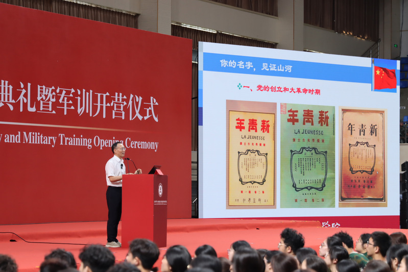 9月2日,马克思主义学院副院长刘宗劲为新生讲授一堂特殊的开学第一课。刘宗劲以“你的名字,见证山河”为主题,带领3000多名新生走进波澜壮阔的百年党史,深情讲述了建党以来不同时期先烈们的英勇事迹,引导学生铭记历史、传承精神,凝聚强国建设的青春力量。