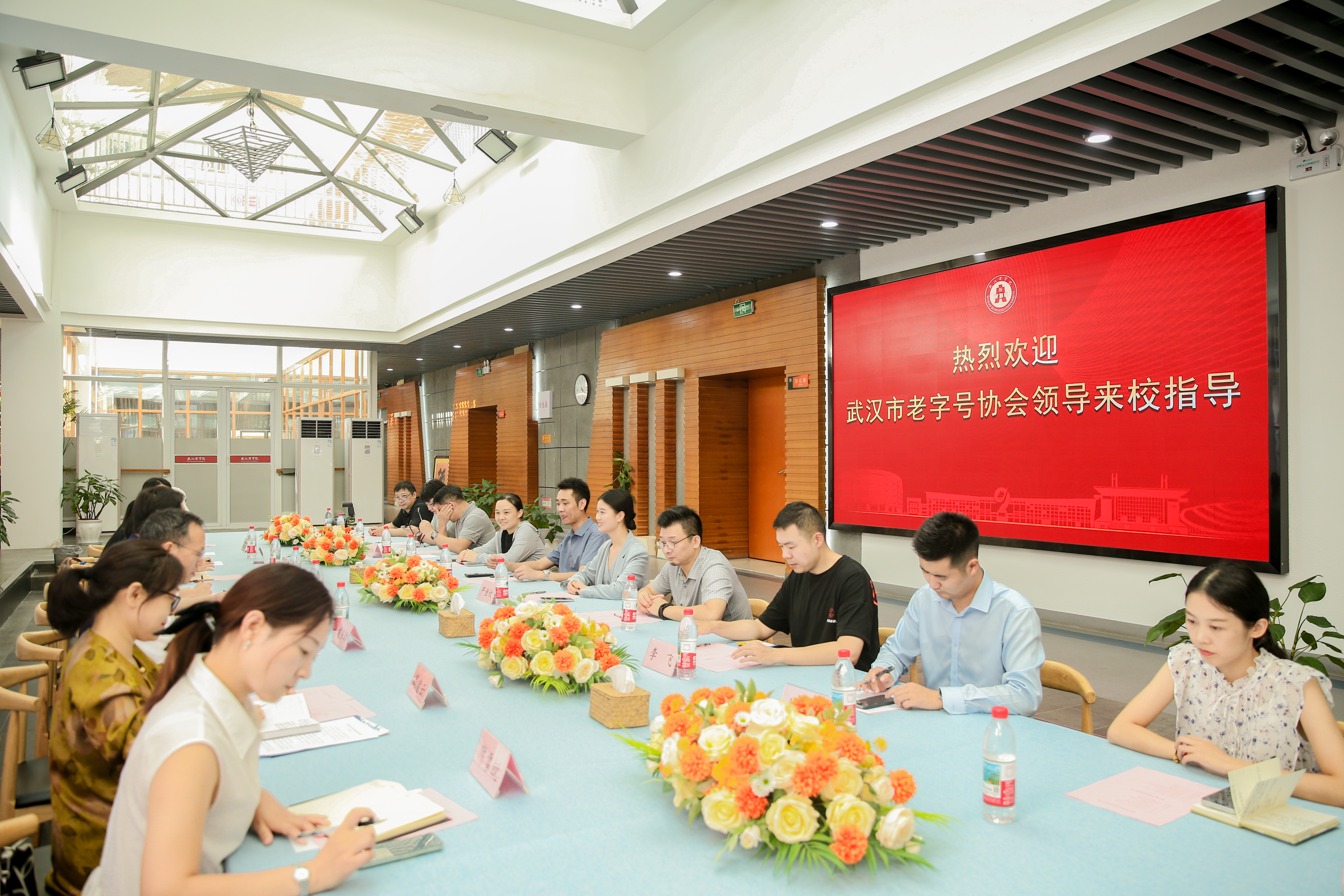 为激活老字号文化育人价值,拓展学校“大思政课”实践育人场域,9月17日下午,马克思主义学院在北区校史馆召开“老字号里的思政课”校企合作座谈会。武汉市老字号协会领导及精益眼镜、苏恒泰、黄鹤楼酒业等企业代表来校参访交流,副校长罗双燕与马克思主义学院、校史馆相关负责人参加活动。