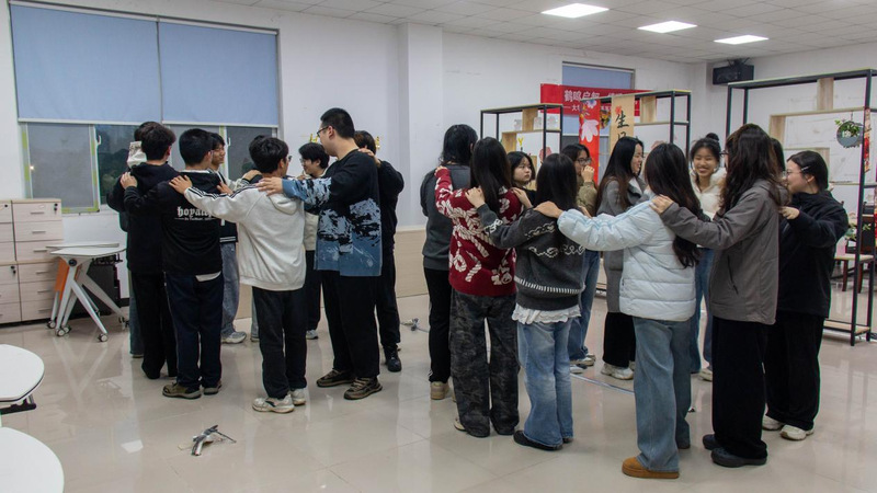 活动伊始,趣味十足的“捉泥鳅” 热身游戏迅速打破陌生感,点燃现场氛围。参与同学按性别分为两组,手搭肩围成圆圈,跟随音乐轻快律动。游戏中,捕捉到歌词里的 “泥鳅”“捉泥鳅”等关键词,全员需即刻完成 180 度转身,灵活的反应、欢快的互动,让现场笑声此起彼伏,原本略显拘谨的氛围在轻松协作中迅速升温。