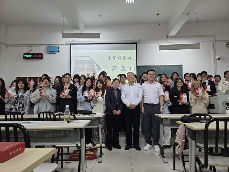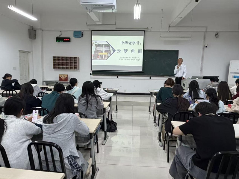 一缕鱼面,串联百年匠心;一堂课堂,浸润学子初心。4月15日晚,云梦鱼面制作技艺非遗传承人刘文华师傅应邀走进校园,以“云梦鱼面的传承与创新”为主题,为师生们带来了一堂兼具文化厚度、时代温度与实践深度的精彩课程,让中华老字号的魅力在课堂中徐徐绽放。
