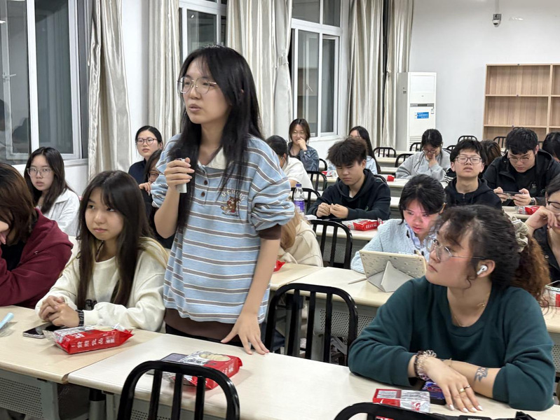 课堂现场互动频繁、氛围热烈。同学们围绕“非遗品牌如何实现年轻化传播”“传统手工艺如何更好融入现代消费市场”“非遗技艺的传承与创新如何平衡”等问题踊跃提问、积极交流。刘文华师傅结合自身创业实践与传承经验,从品牌建设、品质坚守、文化传播等多个维度,用通俗易懂的语言逐一深入解答,让同学们对中华老字号的时代价值、非遗技艺的传承密码有了更直观、更深刻的认知。