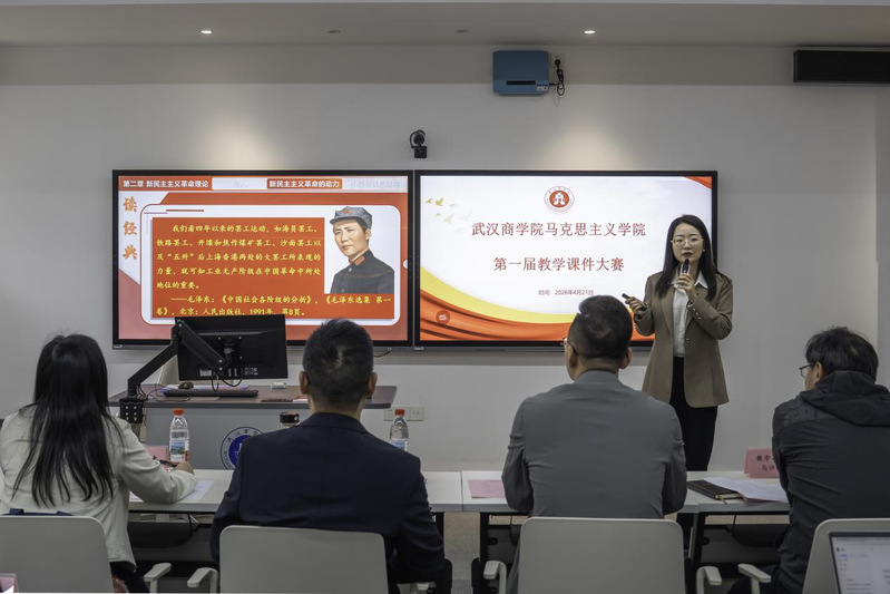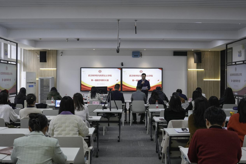 为深入推动信息技术与思政课教学深度融合,全面提升教师课件制作水平与教学创新能力,4月21日下午,马克思主义学院在北四313教室成功举办首届教学课件大赛。本次大赛以“匠心铸魂,课件育新”为主题,副校长罗双燕出席活动,党委宣传部、党委教师工作部、党委学生工作部、教务处、教学质量监控与评估中心等职能部门负责人应邀到场指导。湖北工业大学马克思主义学院副院长华倩、湖北经济学院马克思主义学院副院长冯连军担任校外评审专家。马克思主义学院班子成员及全体教师参加活动,建港中学、奥林小学、墨水湖中学的思政教师通过线上直播远程观摩。